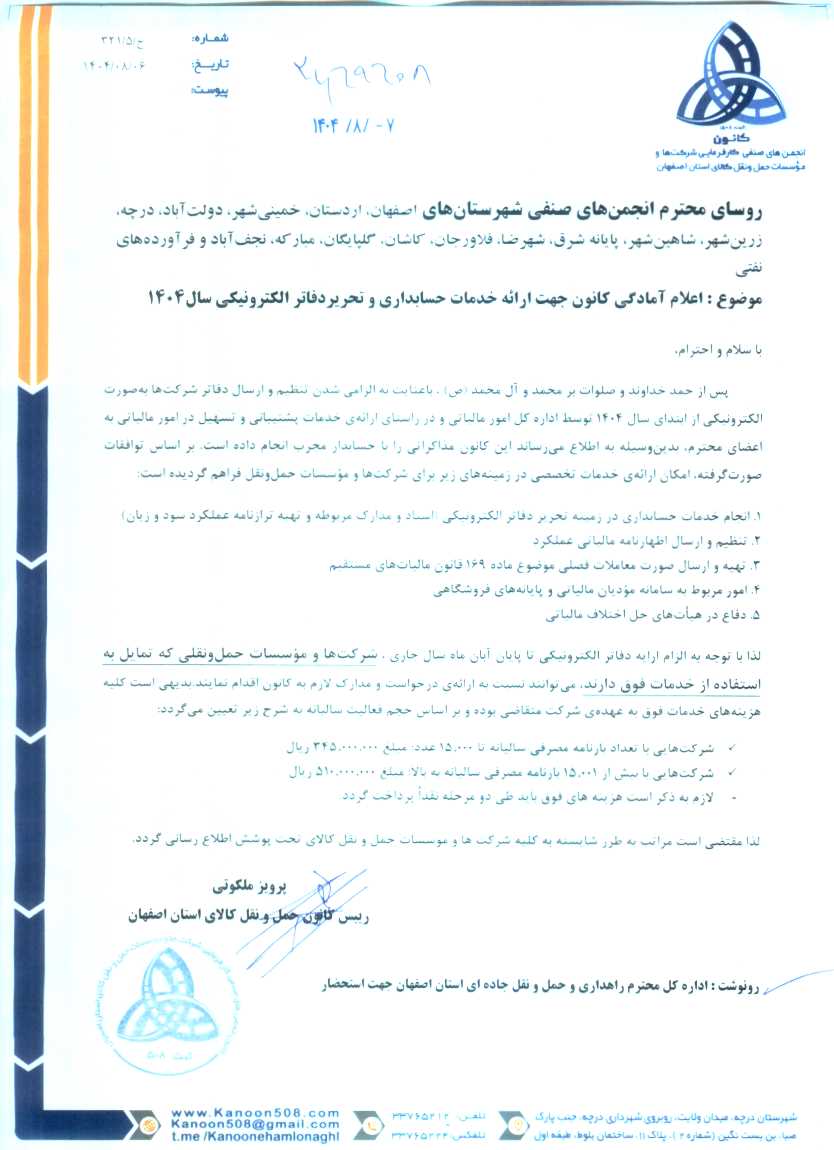 اعلام آمادگی کانون جهت ارائه خدمات حسابداری و تحریر دفاتر الکترونیکی سال 1404